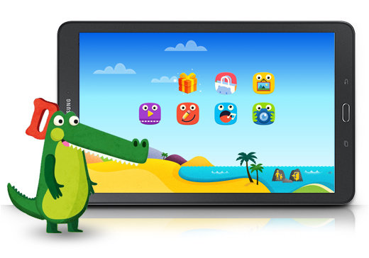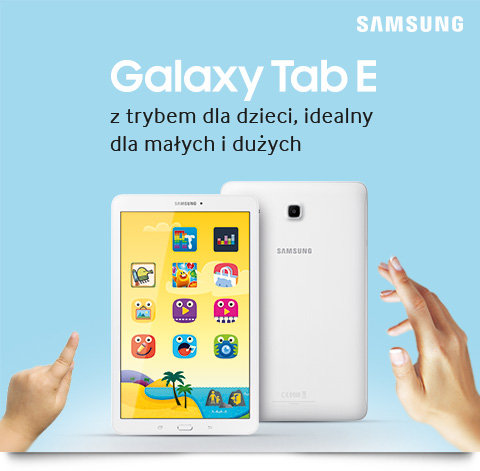 Galaxy Tab E stworzono nie tylko dla dorosłych. Kryje też w sobie fantastyczne funkcje dla najmłodszych. Po włączeniu specjalnego trybu Kids Mode zmienia się interfejs. Na ekranie pojawia się sympatyczna, bajkowa postać, reagująca na dotyk. Specjalne aplikacje zaprojektowane dla dzieci rozwijają ich kreatywność, bawią i uczą. Bezpieczeństwo gwarantuje szereg rodzicielskich ograniczeń i solidna, antypoślizgowa obudowa. Możesz spokojnie pozostawić tablet w rękach dziecka.