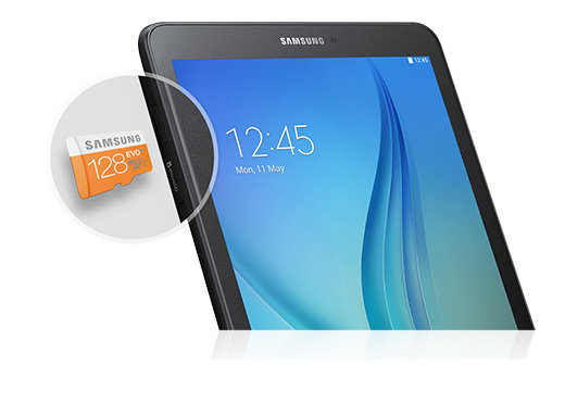 Wiemy, że potrzeby użytkowników tabletów ciągle się zmieniają. Nie musisz określać w momencie zakupu, jak dużo pamięci zewnętrznej potrzebujesz. Dzięki obsłudze kart micro SD o dużej pojemności możesz zwiększyć pamięć Galaxy Tab E nawet o 128 GB*. Przechowuj jeszcze więcej plików i dokumentów, potrzebnych do codziennej pracy. Miejsce przyda się także na multimedia i aplikacje służące rozrywce. Teraz zgromadzone filmy, muzykę czy książki możesz mieć zawsze pod ręką!