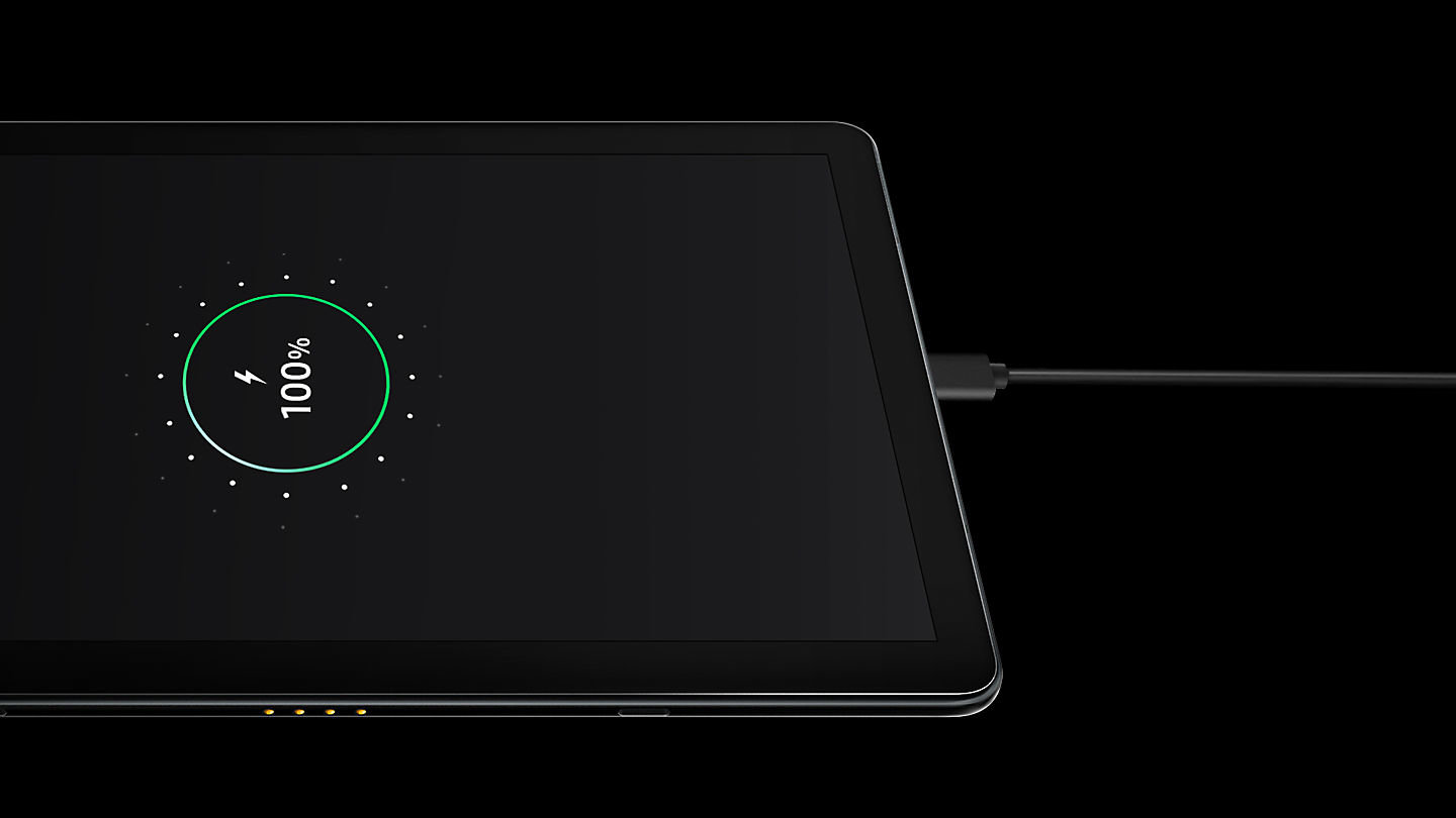 Galaxy Tab S4 posiada baterię o mocy 7300 mAh, która gwarantuje 16 godzin odtwarzania wideo. Teraz możesz za jednym razem obejrzeć cały sezon ulubionego programu. A kiedy bateria w końcu się wyczerpie, za pomocą szybkiego ładowania przywrócisz jej 100% mocy w zaledwie 200 minut.* Czas ładowania może się różnić w zależności od środowiska i urządzenia ładującego.