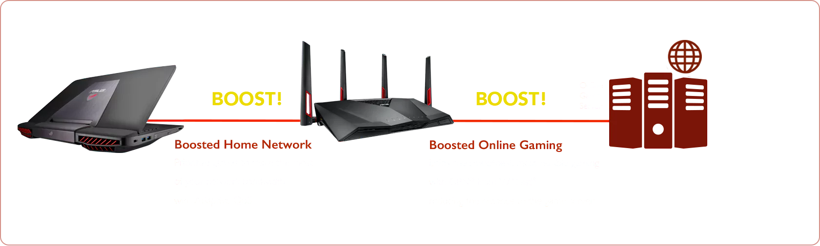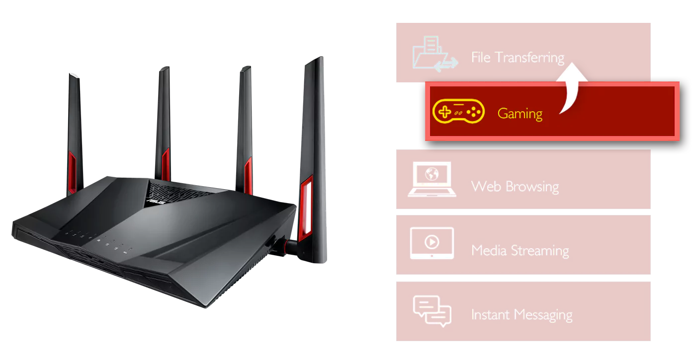 Zwiększ przepustowość gier dzięki zastosowaniu adaptacyjnej QoS (jakość usługi), umożliwiającej łatwe ustawienie priorytetu dla pakietów gier i innych działań. Możesz nawet przypisać pełne dedykowane pasmo podczas grania w trybie gracz solo, dzięki czemu RT-AC88U zostanie idealnym sojusznikiem w grze bez opóźnień w dowolnym miejscu w domu. ![]()