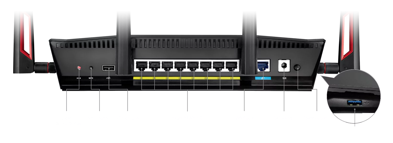 Router RT-AC88U posiada osiem gigabitowych portów LAN - to dwa razy więcej niż większość routerów - dla maksymalnie ośmiu urządzeń kompatybilnych z Ethernetem, które można podłączyć jednocześnie. Urządzenia takie, jak inteligentny telewizor, konsola do gier, dekoder, odtwarzacz multimedialny, nośnik pamięci masowej NAS i inne, mogą mieć swoje własne dedykowane porty, a RT-AC5300 stanie się cyfrowym hubem w Twoim domu. ![]()