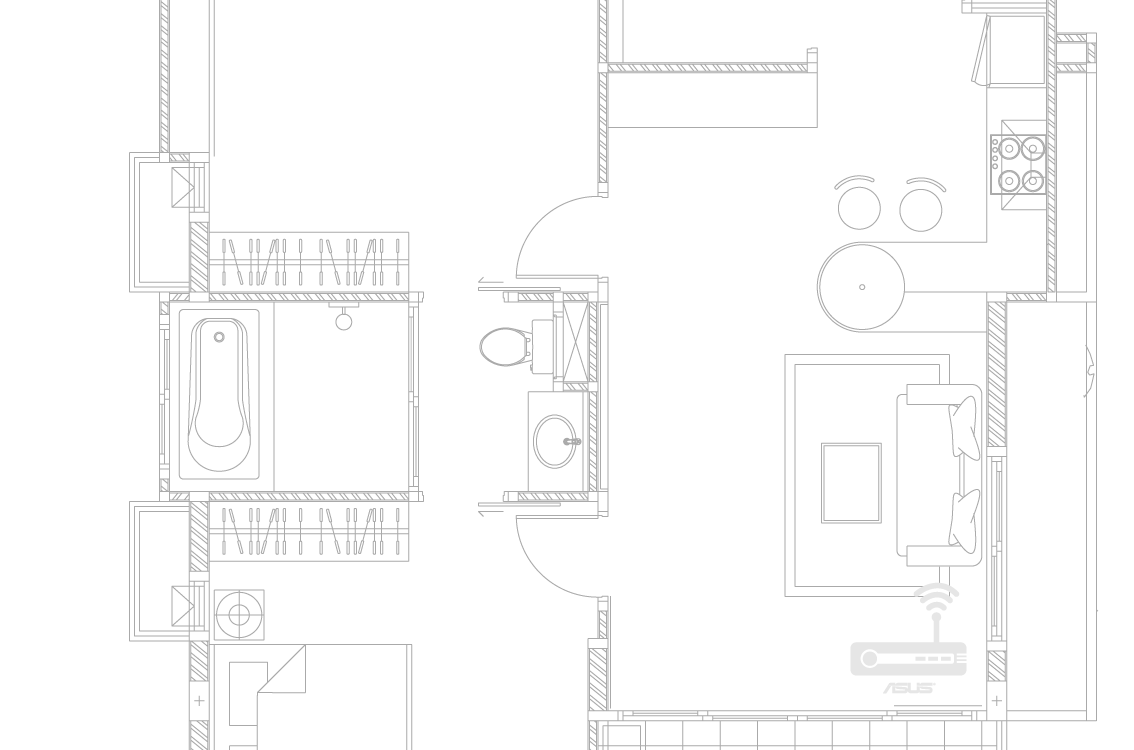 Twój wzmacniacz ASUS RP-AC51 funkcjonuje w domu o dowolnej konstrukcji i wielkości.