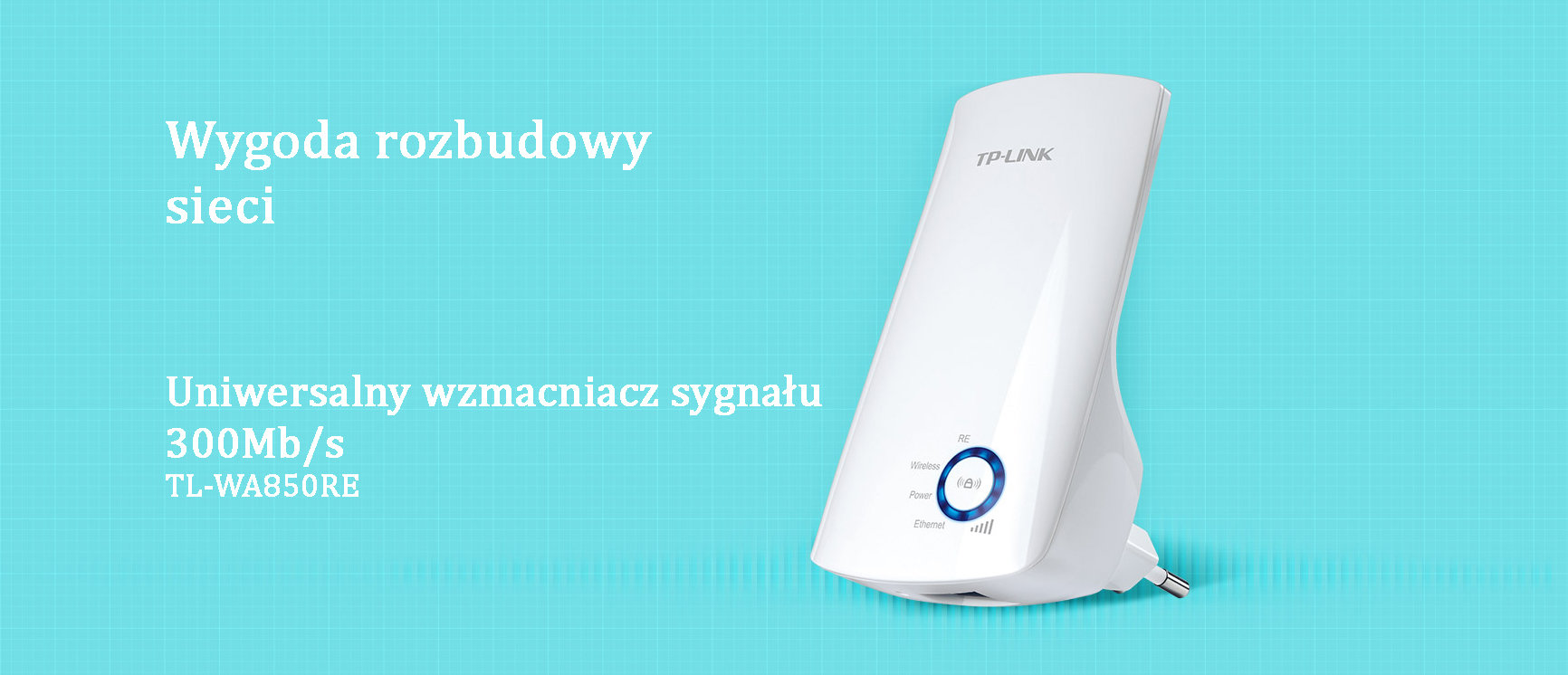 Pojedynczy port Ethernet wzmacniacza TL-WA850RE pozwala na wykorzystanie urządzenia jako karty sieciowej, umożliwiającej podłączenie z siecią bezprzewodową przewodowych urządzeń sieciowych, takich jak odtwarzacze Blu-ray® players, konsole do gier oraz dekodery cyfrowej telewizji. Jednocześnie urządzenie wzmacnia sygnał bezprzewodowej sieci.