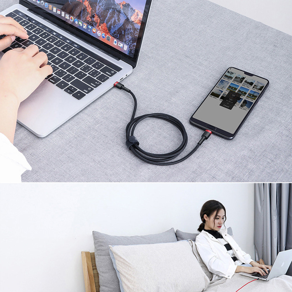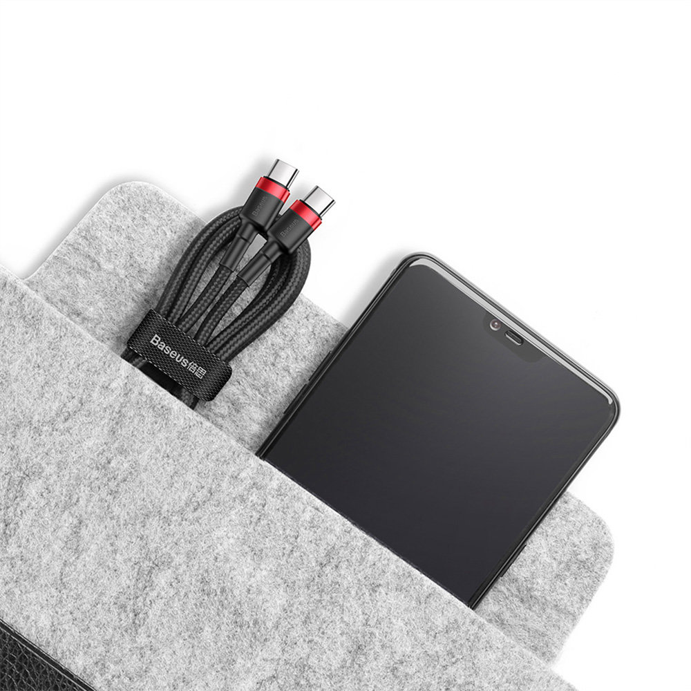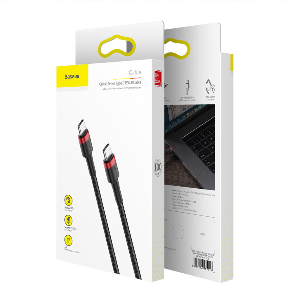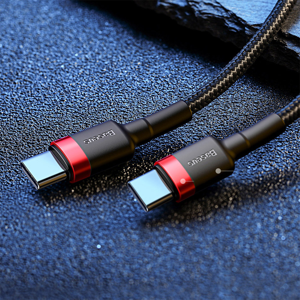 Kabel BASEUS Cafule USB-C do USB-C PD - to kabel kompatybilny z nową technologią Power Delivery 2.0 zwaną w skrócie PD, technologia ta pozwala na szybkie ładowanie oraz błyskawiczną transmisję danych do urządzeń wyposażonych w 2x złącza USB-C. Wydajność tego kabla sięga aż 60W, a prędkość transmisji danych oscyluje na poziomie 480 Mbp/s, plik o rozmiarze 1 gigabajta można przesłać w raptem 30 sekund.Kabel o długości 100cm.
