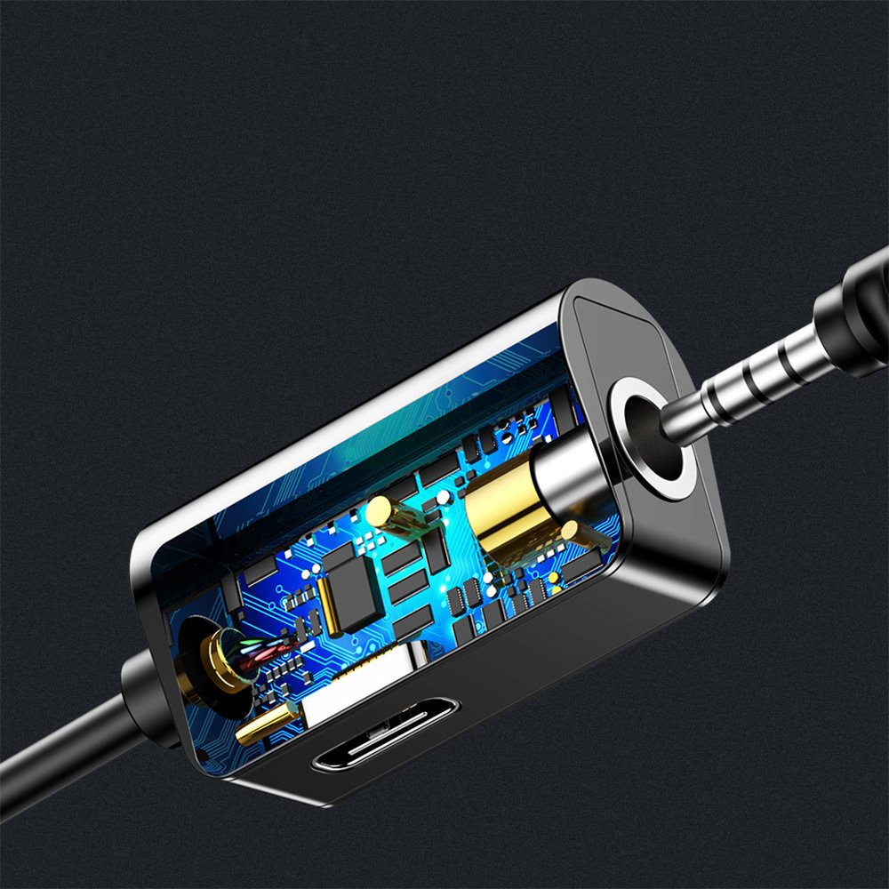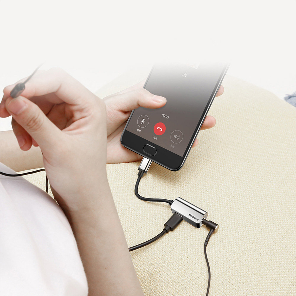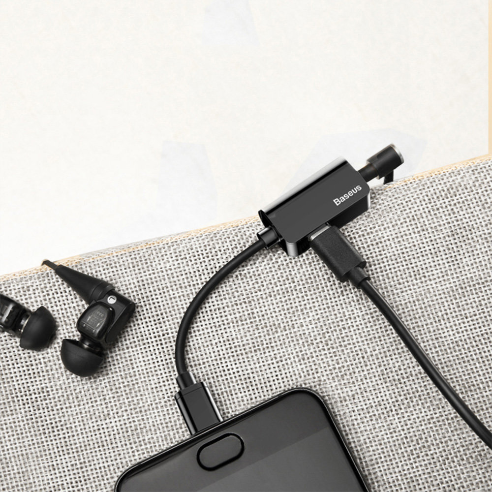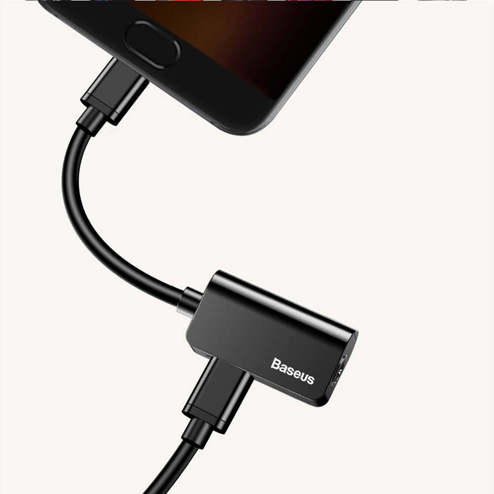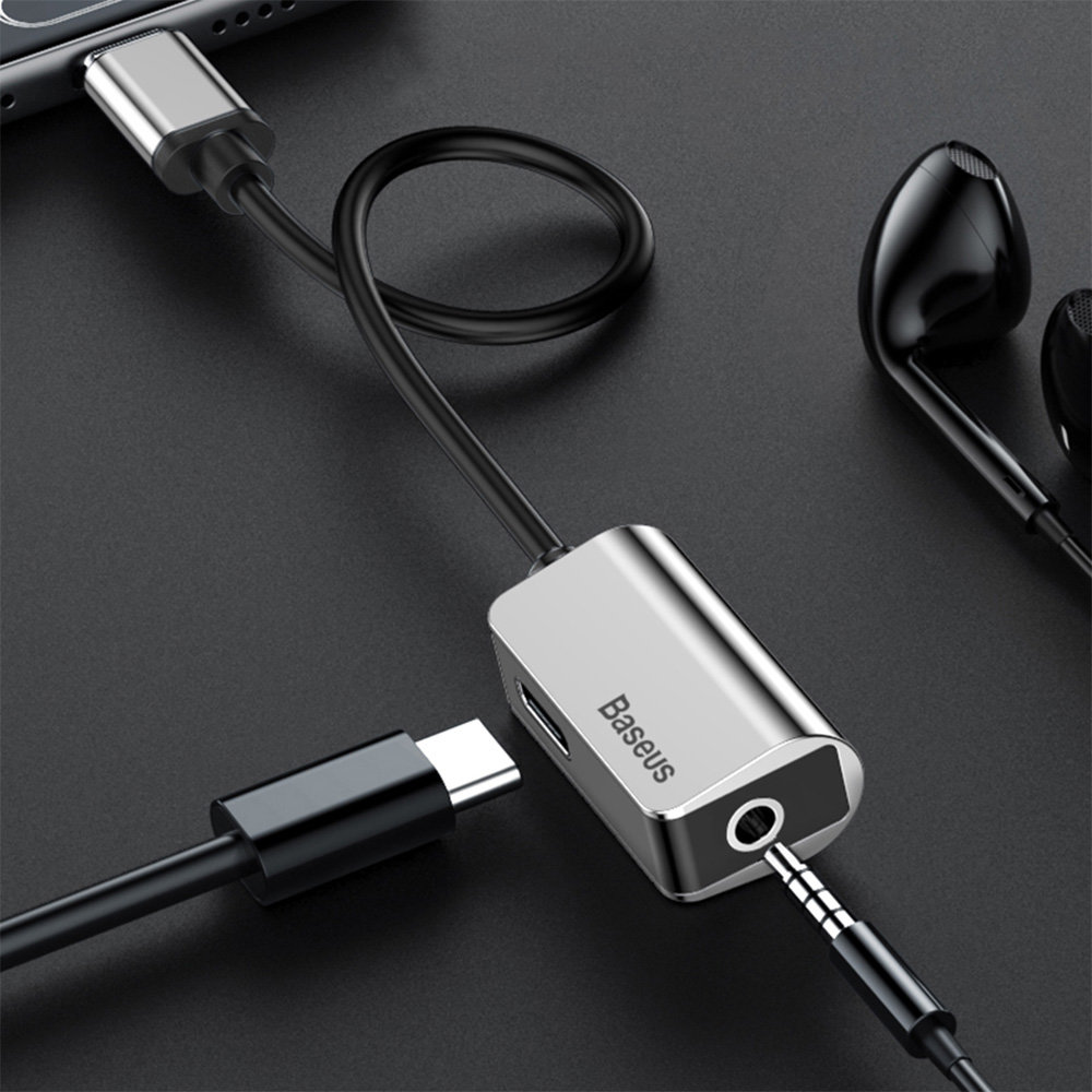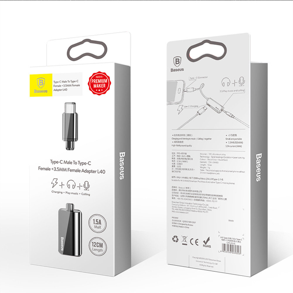 Adapter BASEUS L40 - jest to adapter pozwalający na jednoczesne słuchanie muzyki oraz ładowanie urządzeń wyposażonych w port USB-C. Kabel posiada wtyk USB-C, który podłączamy do urządzenia. Z drugiej strony znajduje się standardowe gniazdo miniJack 3.5mm do podłączenia słuchawek oraz gniazdo USB-C, do którego można podłączyć źródło zasilania. Adapter pozwala na ładowanie urządzenia do 1.5 A, a jego długość to 12 cm.