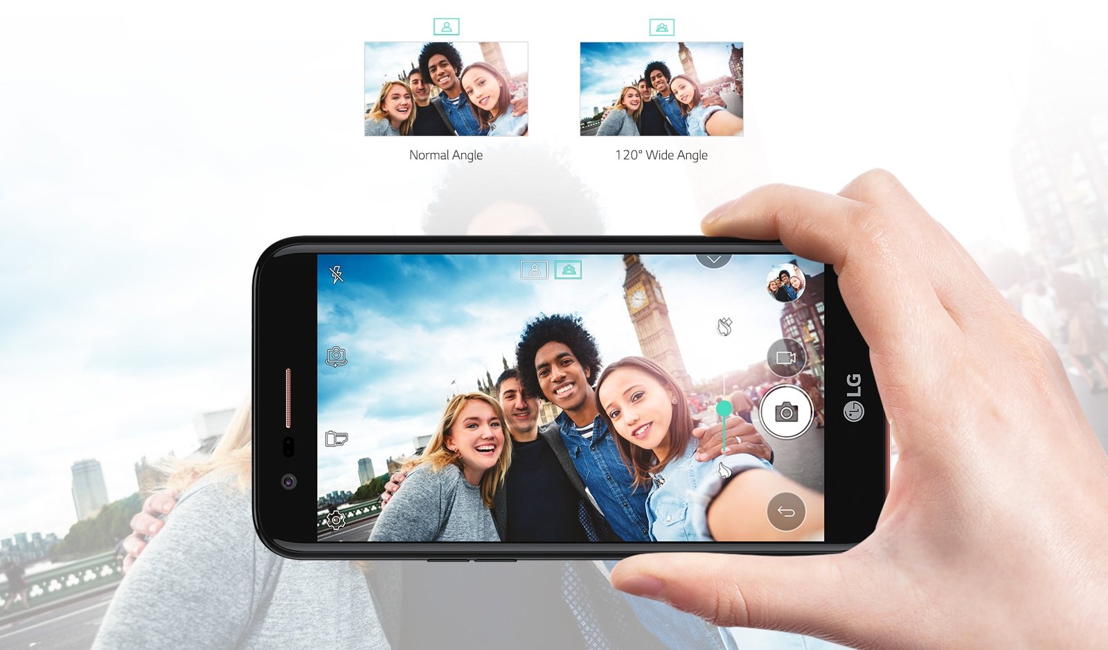 | Szerokokątny aparat 5 MP do robienia selfie Wszyscy w kadrze. Żadnego klękania, ściskania się ani wysięgników. Aparat do robienia selfie o kącie 120° jest wyposażony w jaśniejszy obiektyw F2.2 i bez problemu uchwyci Ciebie oraz całe Twoje otoczenie. Czujnik 5 MP uchwyci także obrazy w standardowej perspektywie, skupiając się na środku obrazu. |