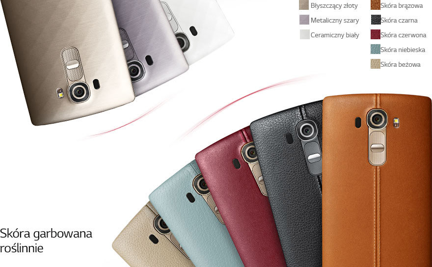 Zainspirowane rzemieślniczą precyzją tylne obudowy LG G4 są dostępne w kolorach metalicznej szarości, bieli, złota oraz w trzech unikalnych, skórzanych wersjach. Szykowne, kolorowe obudowy wyróżniają się wzorem inspirowanym ręcznie wykuwanym metalem, a klasyczne skórzane warianty wykończone są wyjątkowym, eleganckim szwem.