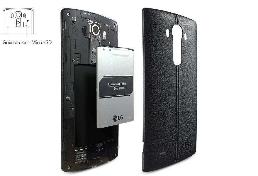 Teraz możesz dłużej korzystać ze smartfona nie robiąc przerwy na ładowanie, ponieważ wyczerpaną baterię można łatwo zastąpić naładowaną. Znajdujące się obok baterii gniazdo kart microSD gwarantuje, że w smartfonie G4 zawsze będzie mnóstwo miejsca do przechowywania pilików.