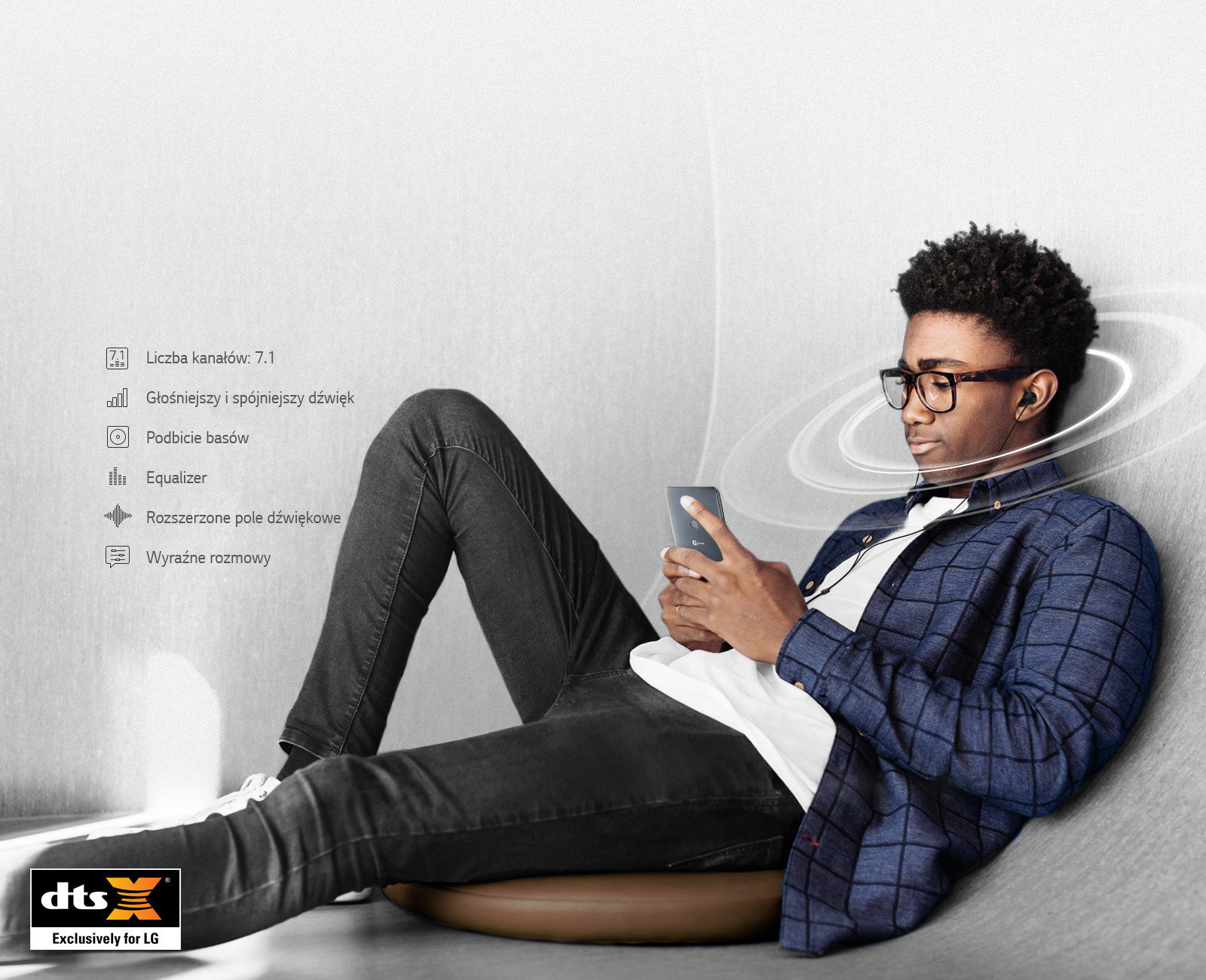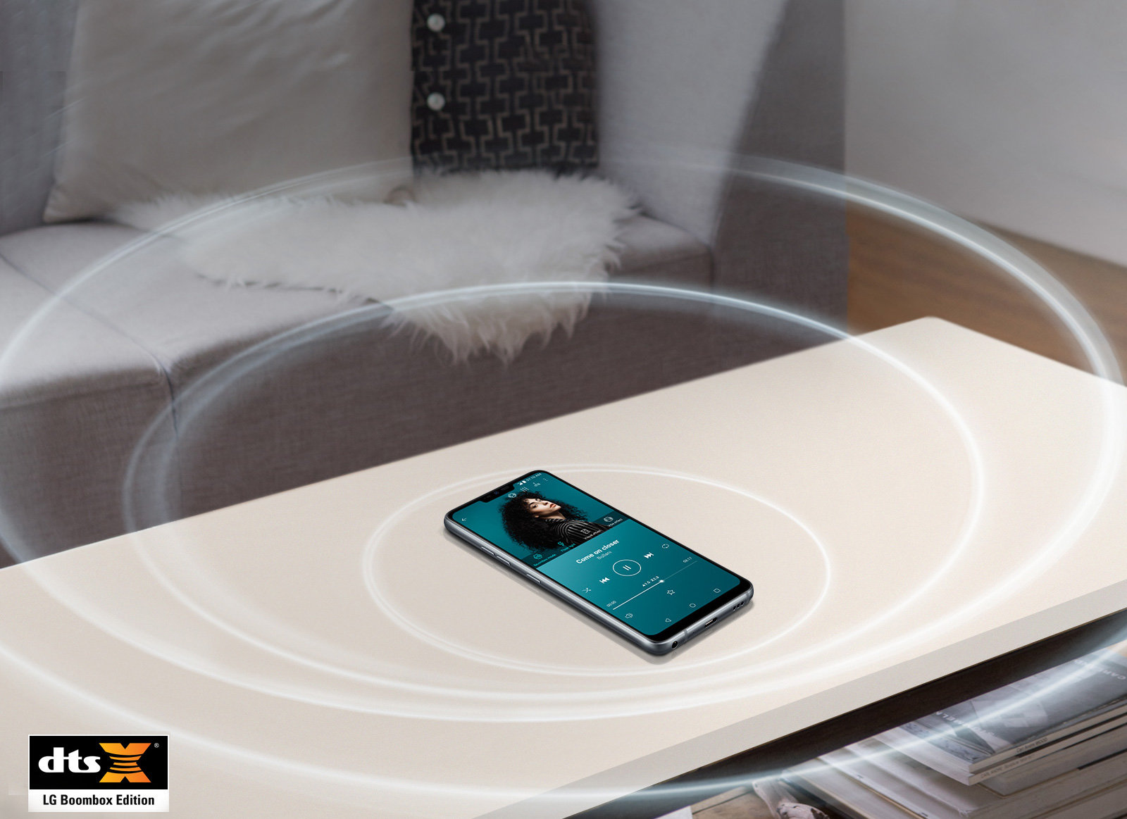 G7ThinQ wykorzystuje swoje wnętrze jako pudło resonansowe wzmacniając basy i pozwalając uzyskać wysokiej jakości głośny dźwięk wypełniający całe pomieszczenie.