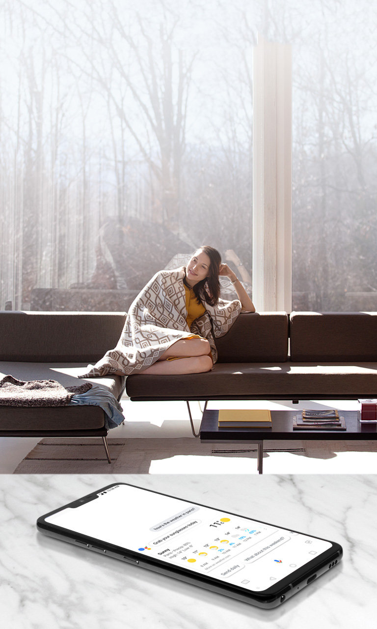 Wszystkie Twoje pytania i żądania zostaną usłyszane i zrozumiane. Smartfon G7ThinQ usłyszy Twój głos z jeszcze większej odległości*, nawet wśród hałasu, na przykład w samochodzie, na łodzi czy podczas słuchania muzyki.