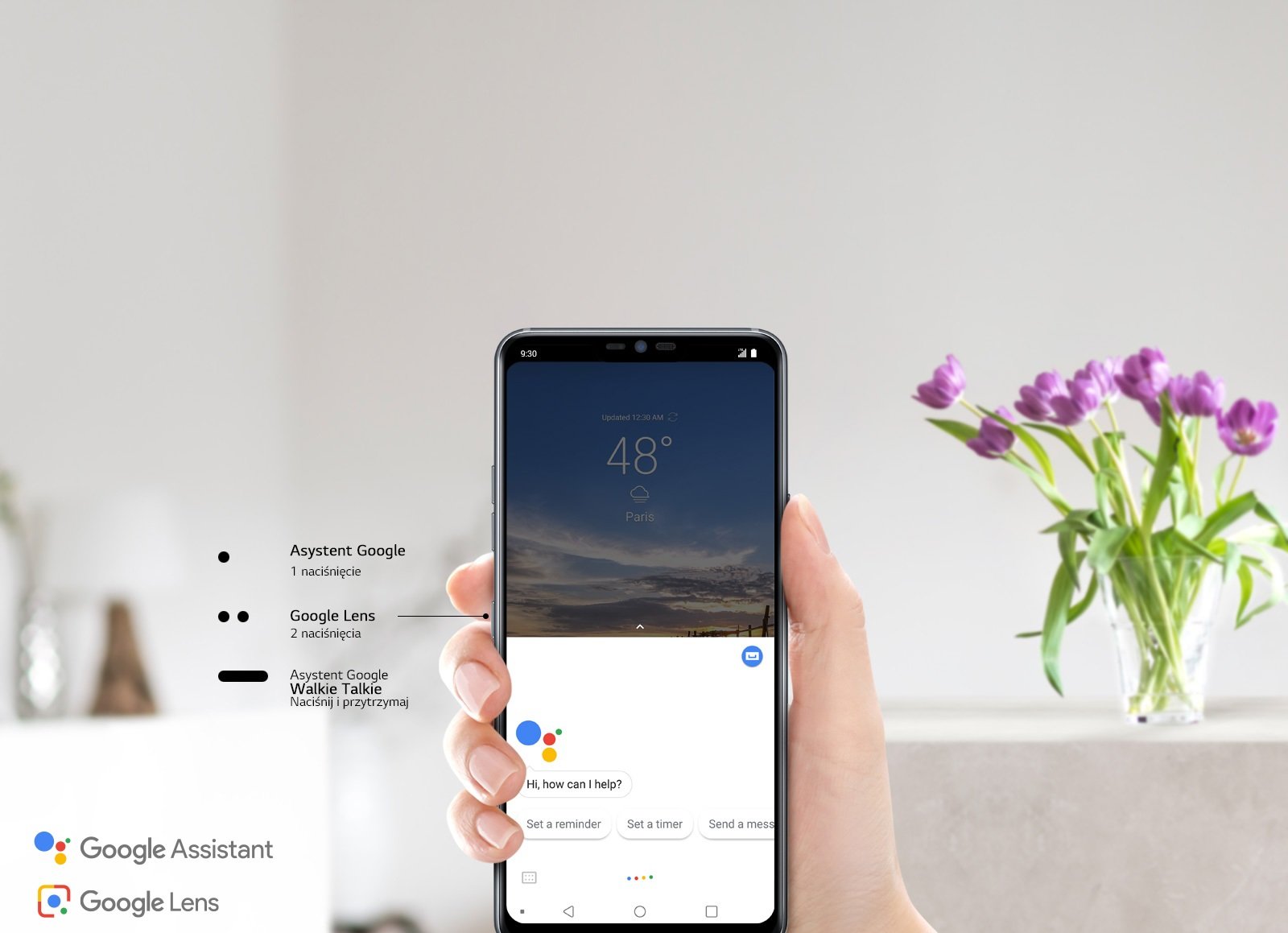Naciśnij dedykowany przycisk aby skorzystać z inteligentnych usług Google. Naciśnij dwukrotnie, by uruchomić Google Lens.