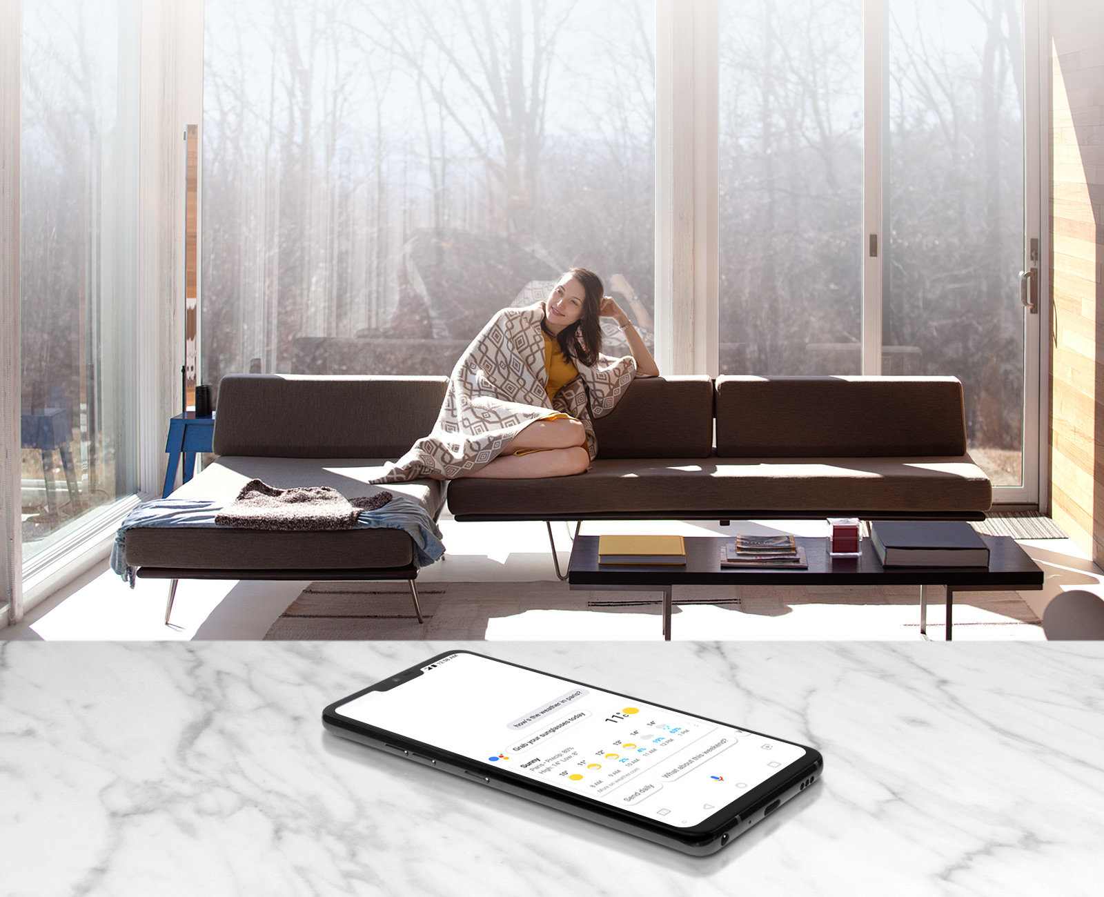 Wszystkie Twoje pytania i żądania zostaną usłyszane i zrozumiane. Smartfon G7ThinQ usłyszy Twój głos z jeszcze większej odległości*, nawet wśród hałasu, na przykład w samochodzie, na łodzi czy podczas słuchania muzyki.