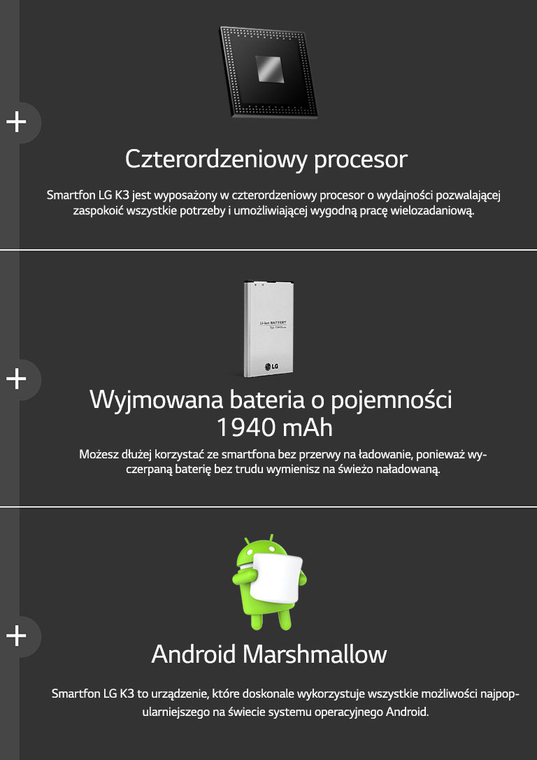 Wyróżniaj się, gdziekolwiek jesteś! Ciesz się każdą podróżą, zamiast martwić się, czy dojedziesz do celu. Dodaj kolorów do każdego dnia i rób mnóstwo zdjęć. LG K3 to Twoja przepustka do lepszego świata — wystarczy tylko nacisnąć przycisk.
