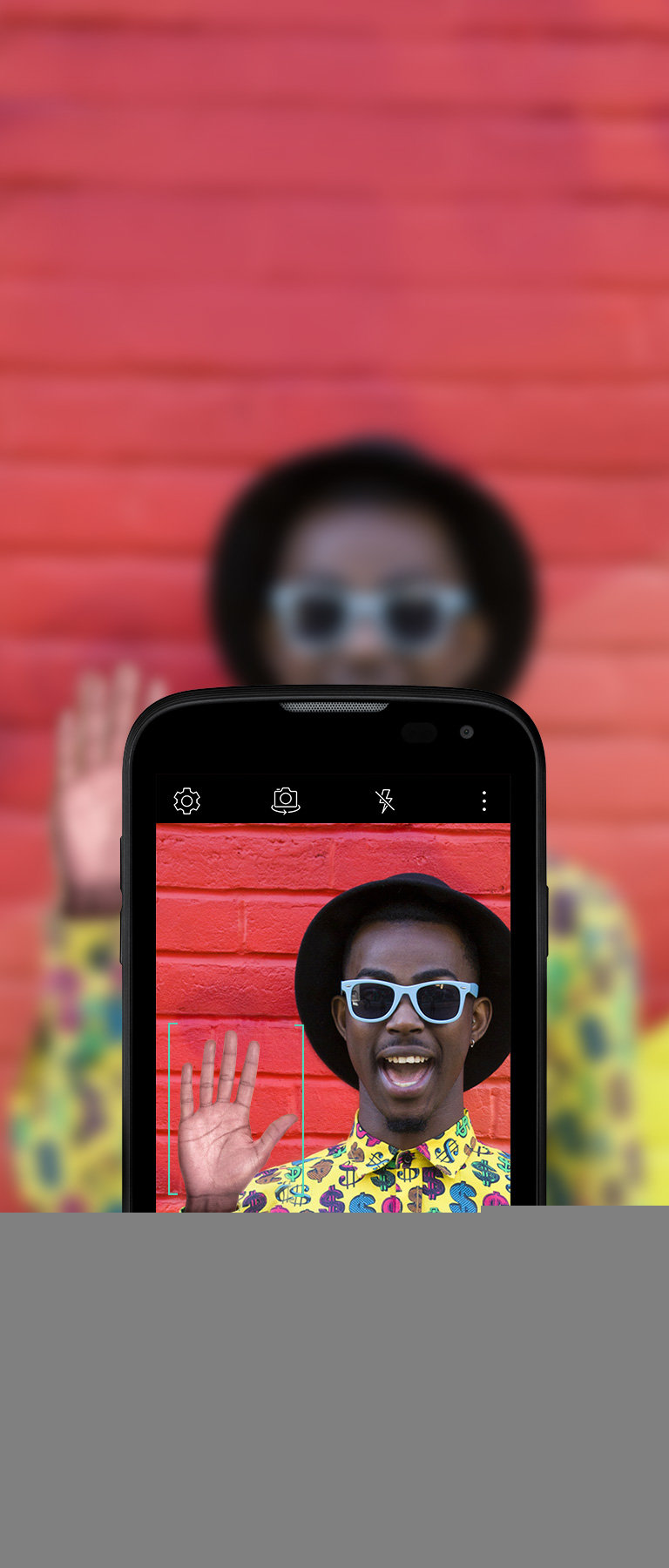 Czas na zdjęcie! Z funkcją Gesture Interval Shot wykonasz serię czterech zdjęć, podnosząc rękę i dwa razy zaciskając ją w pięść. *Funkcja Gesture Interval Shot jest dostępna tylko w wybranych krajach.