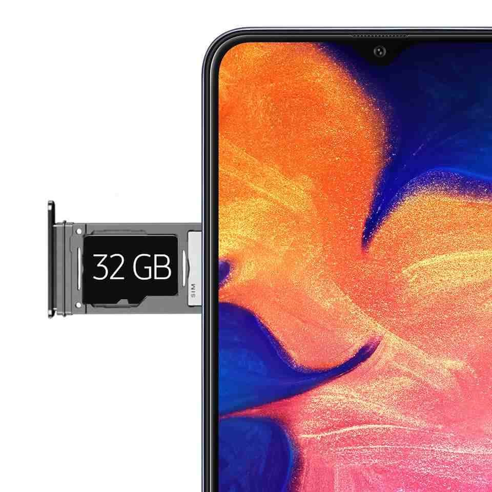 Galaxy A10 posiada 32 GB wbudowanej pamięci wewnętrznej oraz 32 GB pamięci zewnętrznej na karcie microSD w zestawie. Możesz zyskać aż do 512 GB* dodatkowej przestrzeni na zewnętrznej karcie microSD. Zachowasz znacznie więcej filmów, zdjęć i wszystkiego, co jest dla Ciebie warte zapamiętania.
