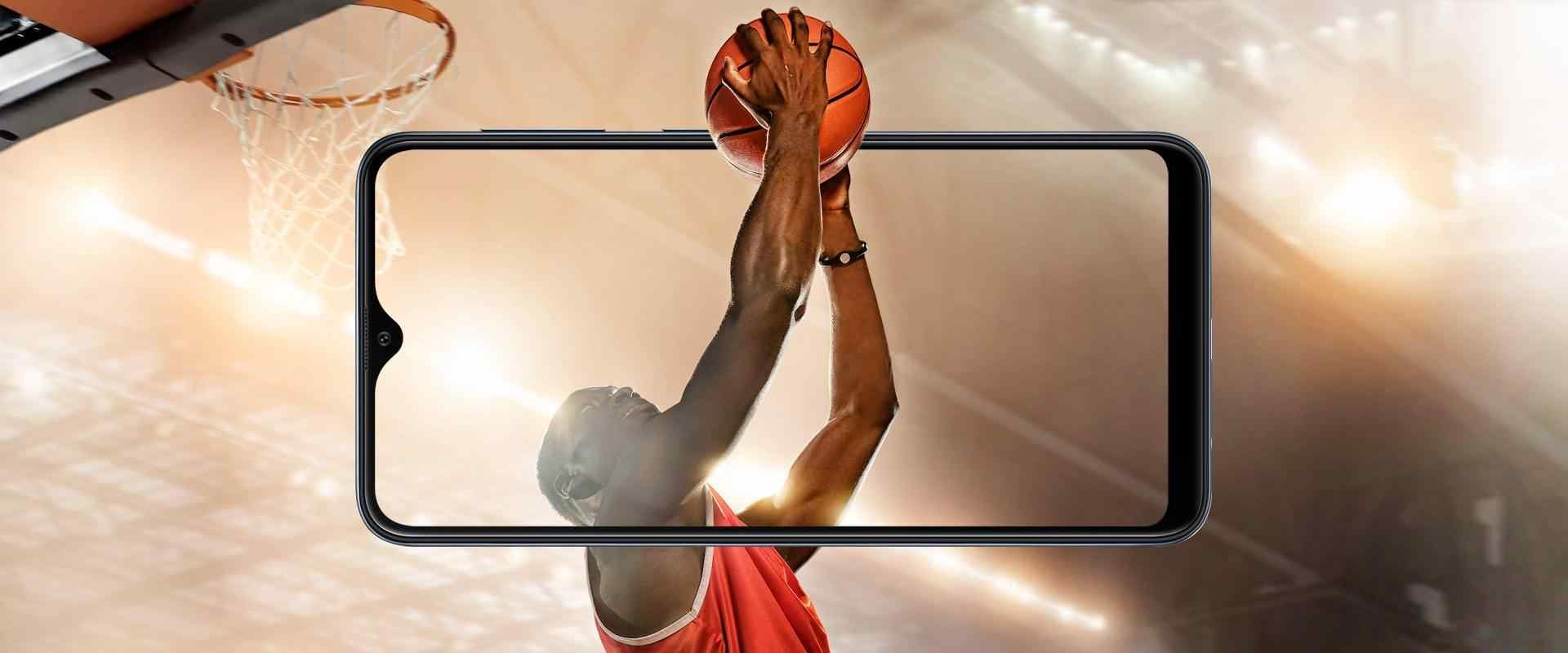 Galaxy A10 wyświetla obraz w formacie 19:9. Daje on szeroki, poziomy obraz, zapewniając niezwykłe doświadczenia filmowe. Dzięki Infinity Display przeniesiesz się w świat wysokiej rozdzielczości, bogactwa kolorów oraz imponującej dokładności detali. Wyświetlacz Infinity-V oznacza niemal bezramkowy panel, w którym przednia kamera umieszczona została w małym wycięciu, kształtem przypominającym literę V.