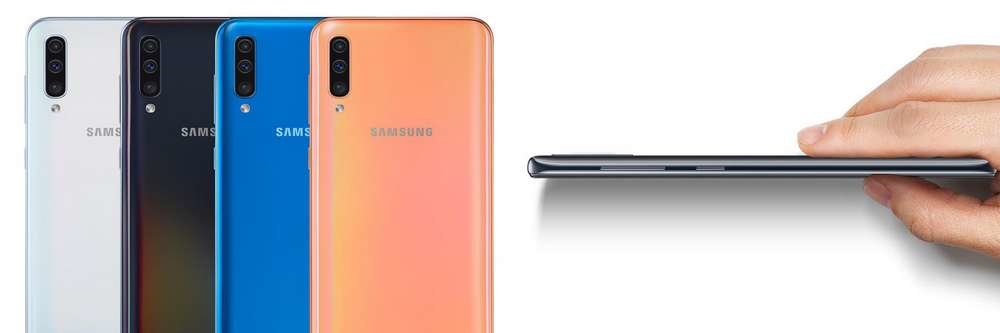 Pierwsze co zauważasz w Galaxy A50 to jego elegancki wygląd. Smartfon wyróżnia się stylowymi, lśniącymi kolorami: czarnym, białym, niebieskim i koralowym. Smukła obudowa o grubości 7,7 mm oraz zaokrąglone krawędzie 3D zapewniają wysoki komfort użytkowania.