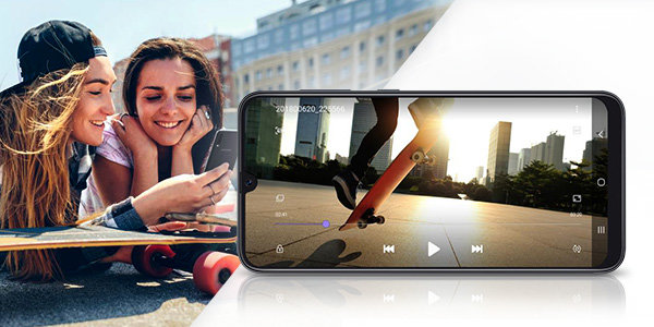 Galaxy A50 wyświetla obraz w formacie 19.5:9. Daje on szeroki, poziomy obraz, zapewniając niezwykłe doświadczenia filmowe. Dzięki Infinity Display przeniesiesz się w świat oszałamiającej rozdzielczości, bogactwa kolorów oraz imponującej dokładności detali. Wyświetlacz Infinity-U oznacza niemal bezramkowy panel, w którym przednia kamera umieszczona została w małym wycięciu, kształtem przypominającym literę U.