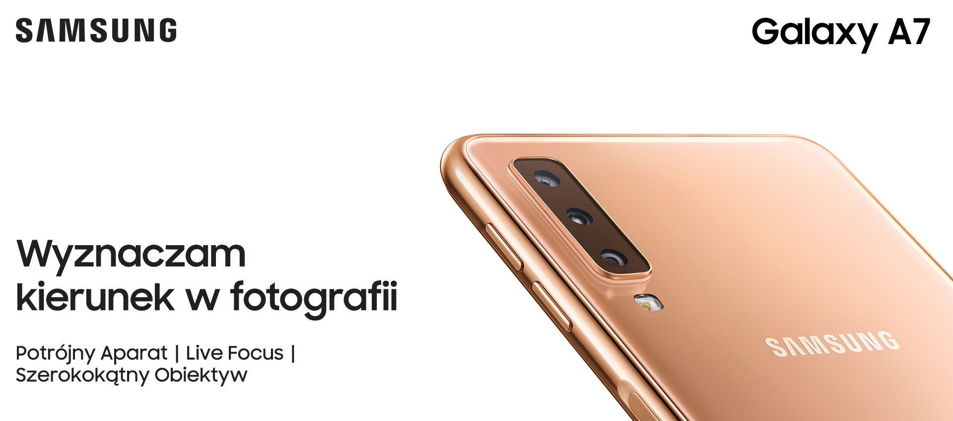 Galaxy A7 obsługuje potrójny aparat o matrycach 24 MP + 5 MP + 8 MP (W - szeroki kąt).