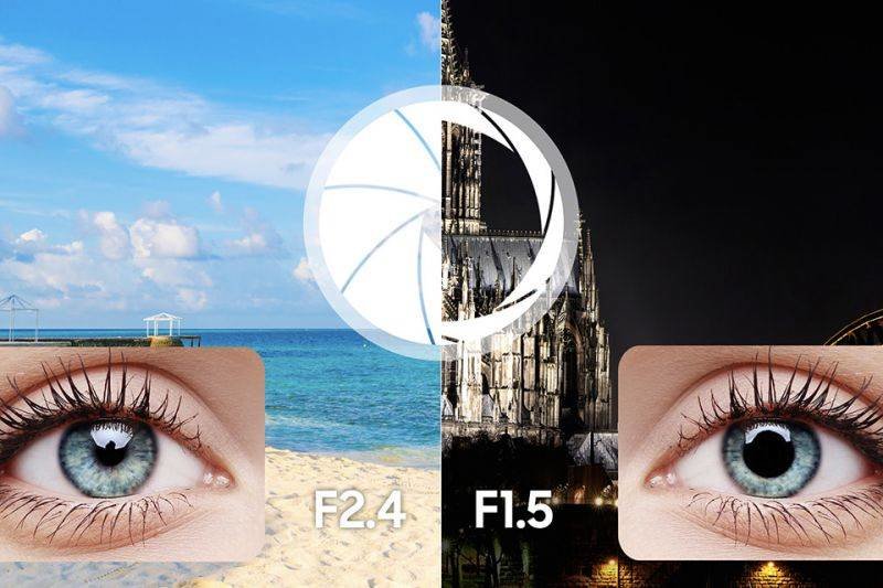 Aparat z podwójną przesłoną (F2.4 i F1.5) działa jak ludzkie oko. Przesłona przepuszcza odpowiednią ilość światła, odpowiednio się zwężając lub rozszerzając.