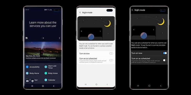 Ekran smartfona Samsung Galaxy S10+ został wyposażony w wyświetlacz, który sprytnie ogranicza ilość emitowanego światła niebieskiego, co przyczynia się komfortowi obsługi i braku odczuwania zmęczenia oczu, nawet podczas wieczornego korzystania z telefonu, gdy w pomieszczeniu jest zupełnie ciemno.