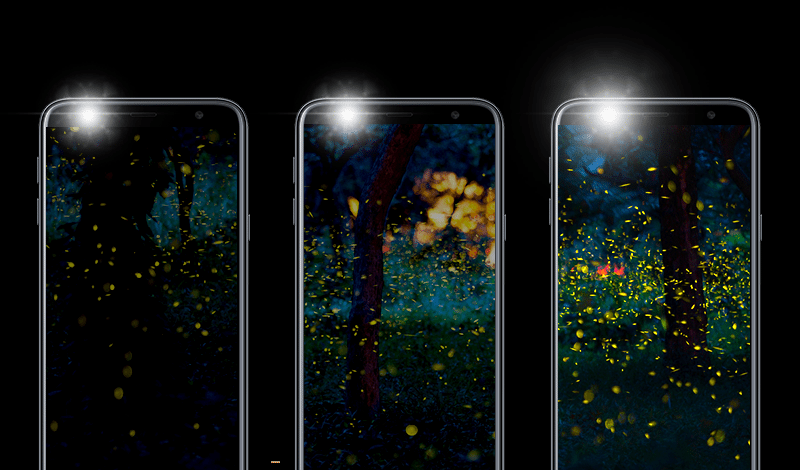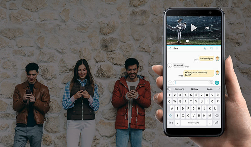 Galaxy J4+ wyświetla obraz w formacie 18.5:9. Daje on, szeroki poziomy obraz, zapewniając niezwykłe doświadczenia filmowe.