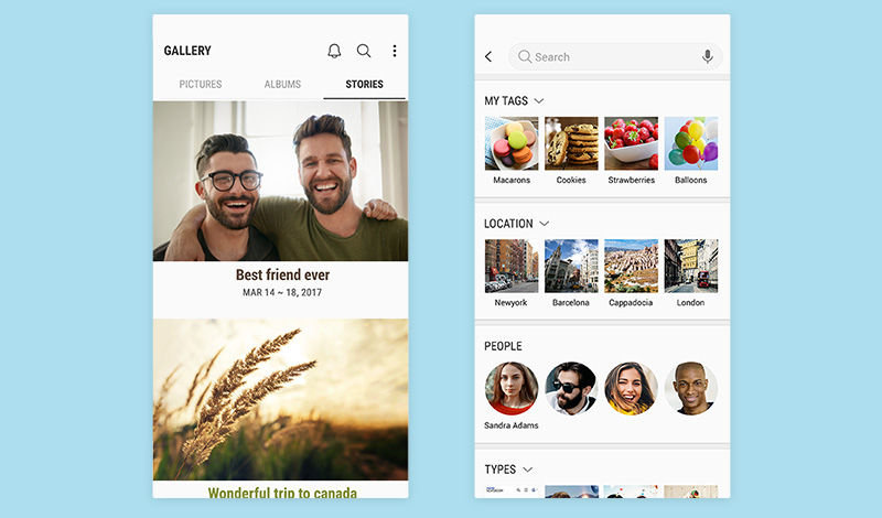 Galeria w Galaxy J4+ ułatwia porządkowanie i udostępnianie zdjęć. Funkcja Historie wykorzystuje informacje o czasie, lokalizacji i rozpoznawaniu twarzy, aby automatycznie tworzyć Historie. Sugeruje nawet odpowiednie motywy i podkład muzyczny. Dzięki paskowi wyszukiwania i kategoriom zdjęć znalezienie udostępnianych treści będzie łatwiejsze.