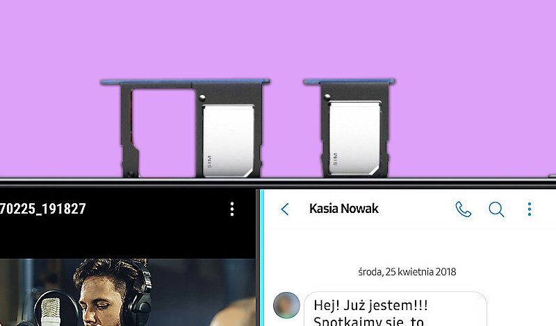 Dzięki opcji dual SIM* na urządzeniu możesz korzystać z dwóch numerów telefonu – osobistego i służbowego. Jedna karta może Ci służyć do połączeń i wiadomości, a druga do pracy w Internecie. Możesz jednocześnie korzystać z dwóch kart SIM i dodatkowo rozszerzyć pamięć smartfona kartą Micro SD*.