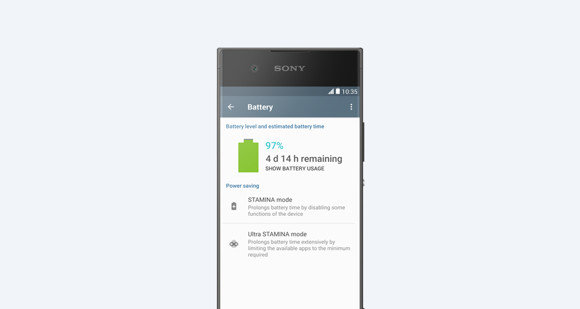 Tryb STAMINA Gdy musisz zaoszczędzić energię, użyj trybu STAMINA, aby wydłużyć żywotność baterii i korzystać ze smartfonu przez cały dzień. |