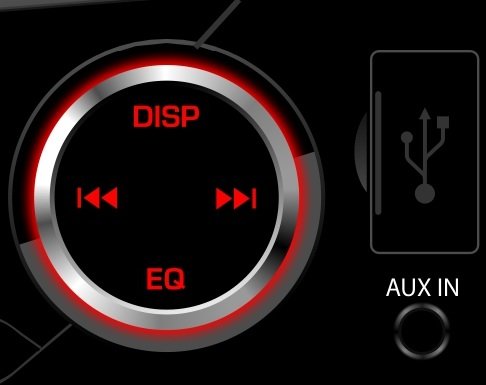 AUX, służący do podłączania innych źródeł dźwięku. Radioodtwarzacz