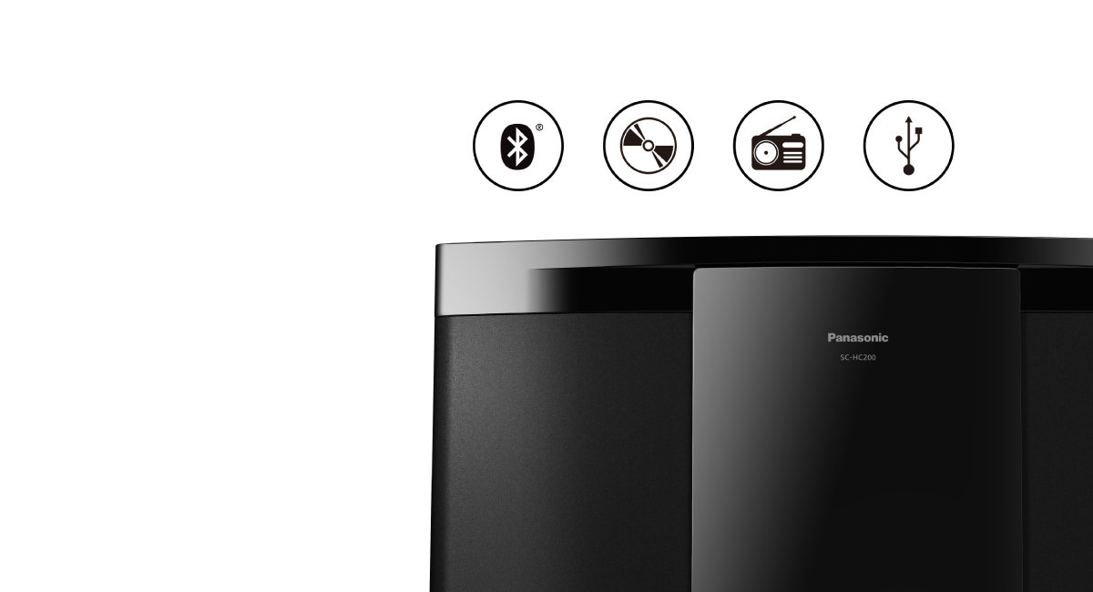 Instrukcja obsługi Wieża PANASONIC SC-HC200EG-K Czarna, Odtw.CD, BT, Wzmacniacz Cyfrowy Lincs D-Amp, Aplikacja Panasonic Music Streaming
