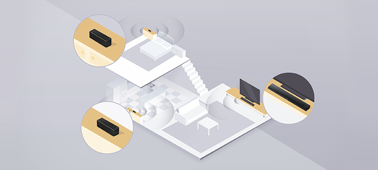 Strumieniowanie do różnych pomieszczeń Przesyłanie strumieniowe muzyki z telewizora do głośników w innych pomieszczeniach gwarantuje pełną wygodę.