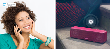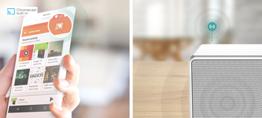 Total listening freedom with Chromecast built-in Wykonuj wiele zadań bez przerw. Możesz grać lub prowadzić rozmowę, nie wyłączając muzyki — nawet podczas korzystania z telefonu w innym pokoju.