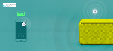 Oszczędzanie akumulatora dzięki wbudowanemu Chromecastowi Wbudowany Chromecast umożliwia bezpośrednie łączenie z usługami transmisji strumieniowej, co zapewnia o wiele dłuższą pracę akumulatora smartfona niż w przypadku połączenia Bluetooth®.