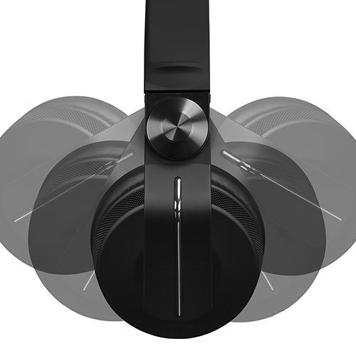 Obróć prawą słuchawkę nawet o 60 stopni aby ułatwić monitorowanie sytuacji. Zawsze możesz złapać poręczny uchwyt zastosowany w słuchawkach, aby szybko wrócić do pierwotnego położenia. |