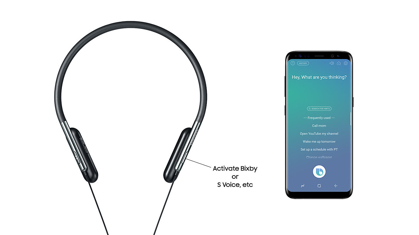 Bądź produktywny przy niewielkim wysiłku. Dzięki zintegrowanemu wsparciu Bixby, słuchawki Samsung U Flex umożliwiają wygodne korzystanie z polecenia głosowego. Wystarczy po prostu nacisnąć lub przytrzymać aktywny przycisk, a Bixby zacznie pracować nawet wtedy, gdy smartfon znajduje się w kieszeni. |
