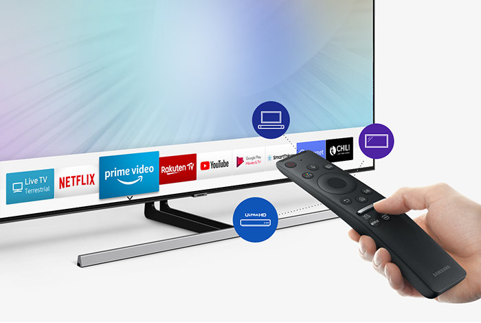 Sterowanie systemem multimedialnym podłączonym do Twojego telewizora jeszcze nigdy nie było tak proste. Dzięki Smart Hub i Jednemu Pilotowi* wszystko, czego potrzebujesz, masz dosłownie pod ręką.