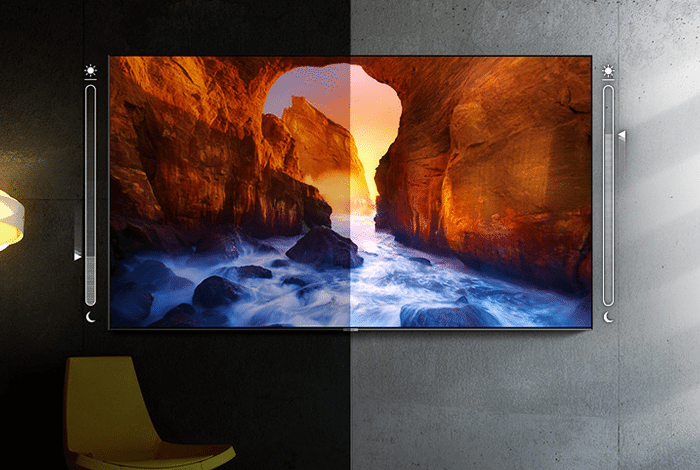 Prawdziwie inteligentny telewizor to taki, który współgra nie tylko z wyświetlanymi treściami, ale także z otoczeniem. Samsung QLED sam dostosuje jasność ekranu i głośność do warunków panujących w Twoim pokoju. Ciesz się doskonałą jakością obrazu i dźwięku, zarówno gdy oglądasz kameralny koncert na żywo, jak i przy wyścigach Formuły 1.