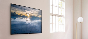 | Gładka, bardzo cienka tafla telewizora Telewizor 4K HDR charakteryzuje się bardzo małą grubością i bezramkową konstrukcją z ledwie widoczną krawędzią wokół ekranu.
