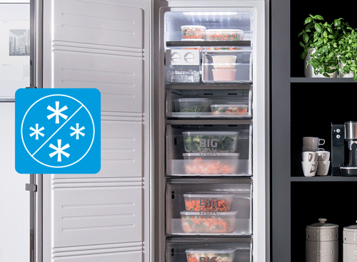 Postanowiliśmy zautomatyzować wiele procesów w naszych urządzeniach, aby ułatwić Twojej rodzinie codzienne funkcjonowanie. Jednym z nich jest odszranianie, dzięki czemu nie musisz pamiętać o regularnym opróżnianiu urządzenia z produktów i rozmrażaniu w celu wyczyszczenia wnętrza. Zyskaj czas dla bliskich, a sprzęt sam o siebie zadba.
