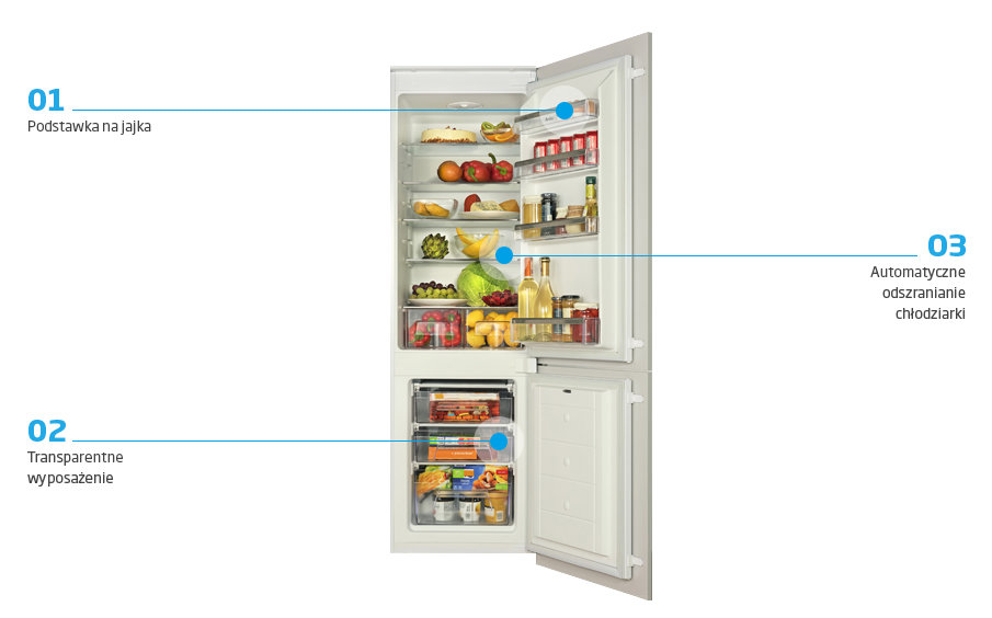 Zapobiega osadzaniu się szronu oraz konieczności opróżniania całej zawartości lodówki.