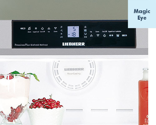 Eleganckie i precyzyjne sterowanie MagicEye z innowacyjną obsługą Touch gwarantuje dokładne zachowanie wybranej temperatury zarówno w chłodziarce jak i zamrażarce. Poprzez delikatne dotknięcie powierzchni Touch można wygodnie i w prosty sposób nastawić wszystkie funkcje.