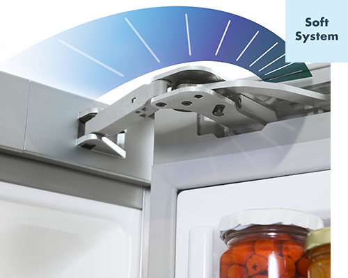 SoftSystem to innowacja zapewniająca jeszcze większą wygodę i bezpieczeństwo. Wbudowany w drzwiach urządzenia mechanizm tłumi ruch oraz pozwala na delikatne zamknięcie drzwi, nawet przy ich pełnym załadowaniu produktami. Drzwi zamykają się automatycznie od kąta otwarcia wynoszącego ok. 30°.