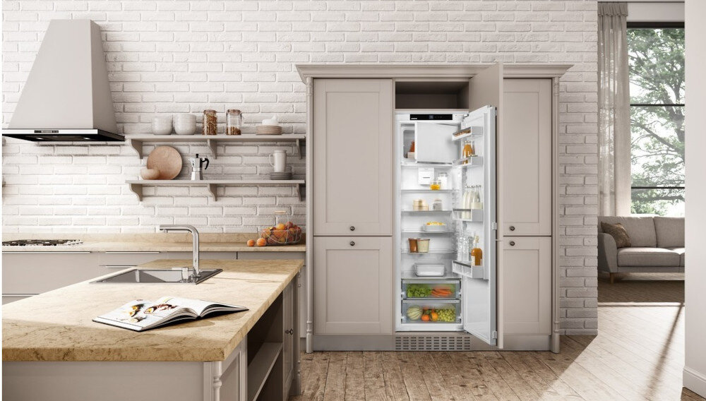 Zapach niektórych produktów spożywczych może być niekiedy odbierany jako niezbyt przyjemny. Dla lodówki LIEBHERR to jednak nie problem: dzięki filtrowi z węglem aktywowanym FreshAir we wnętrzu zawsze panuje świeże powietrze. Filtr znajduje się bezpośrednio na drodze strumienia powietrza w obudowie wentylatora i w ten sposób neutralizuje w znacznym stopniu zapachy. Wskaźnik przypomina o wymianie filtra.