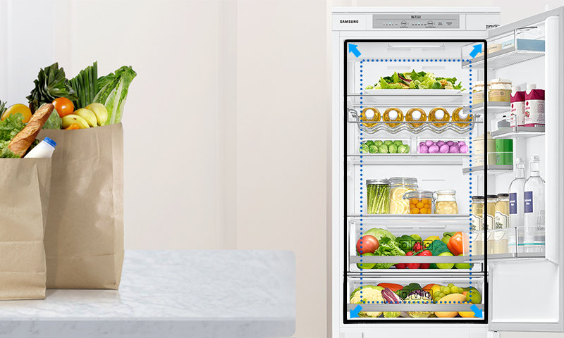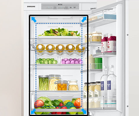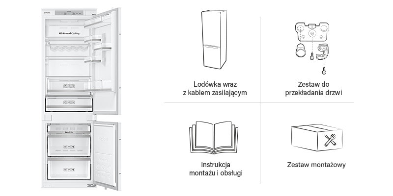![]() ![]() wybrane cechyAll-Around CoolingChłodne powietrze dociera do każdego zakamarka lodówki. Wydmuchiwane jest przez liczne otwory znajdujące się na poziomie każdej półki. Pełny No Frost™Technologia eliminuje tworzenie się szronu i lodu wewnątrz lodówki, dzięki czemu żywność pozostaje dłużej świeża i zachowuje więcej wartości odżywczych. Space MaxCieńsze niż w tradycyjnej lodówce ścianki. Zwiększona pojemność wewnętrzna, przy zachowaniu tych samych wymiarów zewnętrznych. Power Freeze i Power CoolFunkcja Power Freeze aktywuje szybkie zamrażanie, a Power Cool jest odpowiedzialna za intensywne chłodzenie. Silnik Digital InverterSilnik jest cichy i oszczędny. Optymalna praca kompresora pozwala obniżyć opłaty za prąd, a żywotność lodówki jest znacznie wydłużona. Tryb wakacyjnyTryb wakacyjny zachowuje w części chłodzącej temperaturę na poziomie 12°C. Jednocześnie zamrażalnik pracuje bez zmian. Spójna ARANŻACJA KUCHNI![]() ![]() Możliwość zabudowania urządzenia sprawia, że kuchnia będzie stanowiła spójną całość, a po zabudowie nie stracimy żadnej z jego praktycznych funkcji. Dzięki technologii Space Max, wewnątrz lodówki do zabudowy mamy więcej powierzchni użytkowej. Na praktyczne, optymalnie zaprojektowane wnętrze składają się półki z eleganckiego i łatwego w utrzymaniu czystości hartowanego szkła oraz pojemniki w drzwiach, które można umiejscowić tak, by przechowywać produkty o różnej wielkości. ![]() ![]() Technologia Space Max, umożliwiła pogłębienie i poszerzenie przestrzeni użytkowej chłodziarko-zamrażarki. Wyjątkowy i wysoce wydajny system izolacji sprawił, że ścianki urządzenia stały się cieńsze i wewnątrz do dyspozycji mamy większą pojemność. W tak zaprojektowanej lodówce zmieścisz więcej mimo tego, że parametry zewnętrzne się nie zmieniły. Łatwa, samodzielna regulacja. Pojemniki na drzwiach![]() ![]() Przechowywanie nigdy nie było tak łatwe! Umieść pięć pojemników w drzwiach lodówki tak, by swobodnie przechowywać produkty o różnej wielkości. Wykorzystaj miejsce w drzwiach, zwalniając tym samym miejsce na półkach. Jeszcze więcej miejsca w lodówce. Półka na butelki![]() ![]() System organizacji przestrzeni wewnątrz lodówek Samsung to rozmaite rozwiązania dające Ci łatwy dostęp do przechowywanych pokarmów i napojów. Metalowa, specjalnie wyprofilowana półka na wino, to idealne miejsce do zagospodarowania swoich ulubionych napojów butelkowych. Wszystkie produkty w zasięgu ręki. Półka Easy Slide Porządek w zamrażalniku i wszystko pod ręką! Wysuwasz lub wsuwasz. W pełni wykorzystane miejsce i funkcjonalne rozwiązanie. Zwłaszcza, gdy chcesz sięgnąć po rzeczy umieszczone głębiej. Wygodne rozwiązanie. Pojemne szuflady Większe i bardziej praktyczne szuflady w zamrażalniku! Zapewniają optymalną przestrzeń do przechowywania żywności przeznaczonej do mrożenia. Szuflady wysuwają się do samego końca, dzięki czemu dostęp do przechowywanych produktów jest prosty i wygodny. Technologie Samsung![]() ![]() Chłodne powietrze w każdym zakamarku lodówki! All-Around Cooling