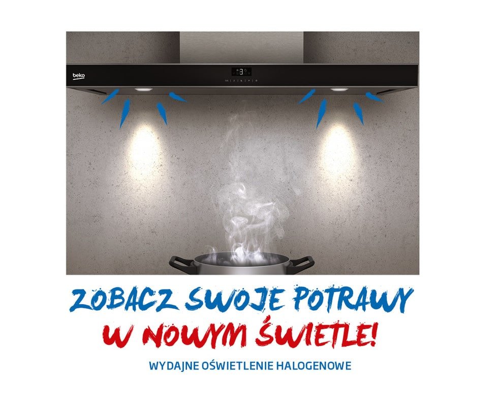 | Wydajne oświetlenie halogenowe Kiedy na płycie grzewczej bulgoczą nasze nowe, kulinarne arcydzieła, dobrze jest widzieć, co się robi. Pomoże w tym bardzo jasne, wydajne oświetlenie halogenowe, zainstalowane w tym okapie Beko. |