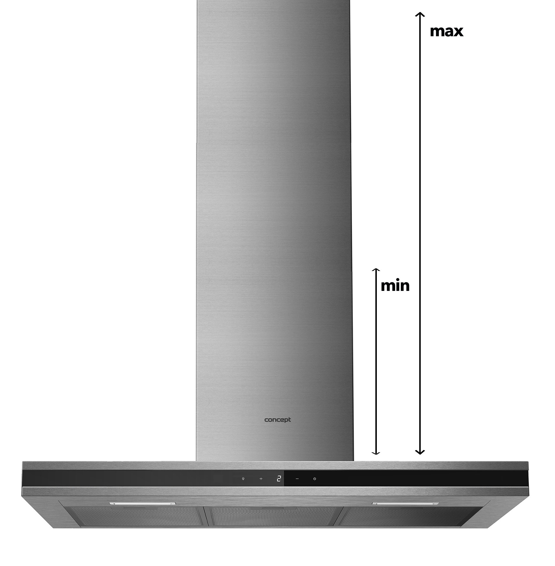 | Regulowana wysokość okapu Wysokość okapu zwykle podawana jest w wartości minimalnej i maksymalnej. W zestawie znajdują się dwie części "komina", które można nakładać na siebie. W ten sposób regulujesz wysokość w zależności od swoich potrzeb. |