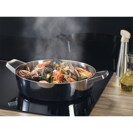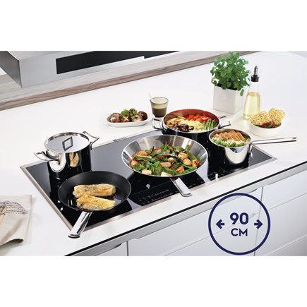Szersze spojrzenie na gotowanie Okap kuchenny o szerokości 90 cm obejmuje całą powierzchnię kuchenki, nawet jeśli płyta lub kuchenka są szersze. |