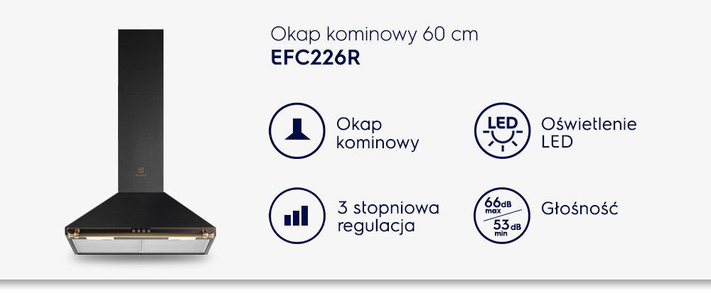 - Okap ELECTROLUX EFC226R Czarny matowy 420m3/h 66dB klasa D