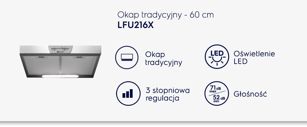 Okap ELECTROLUX LFU216X Srebrny 208m3/h 67dB klasa D